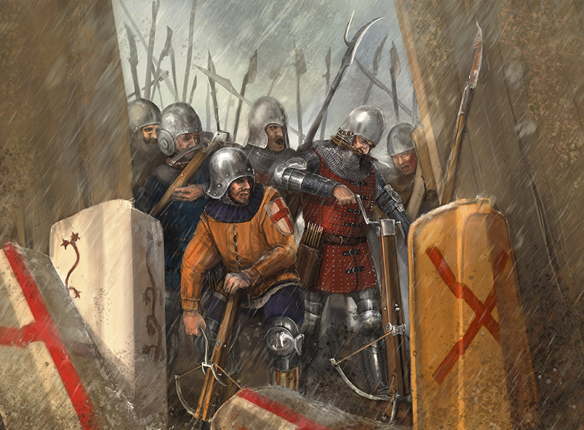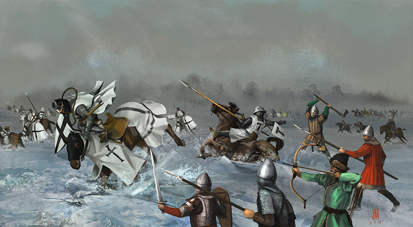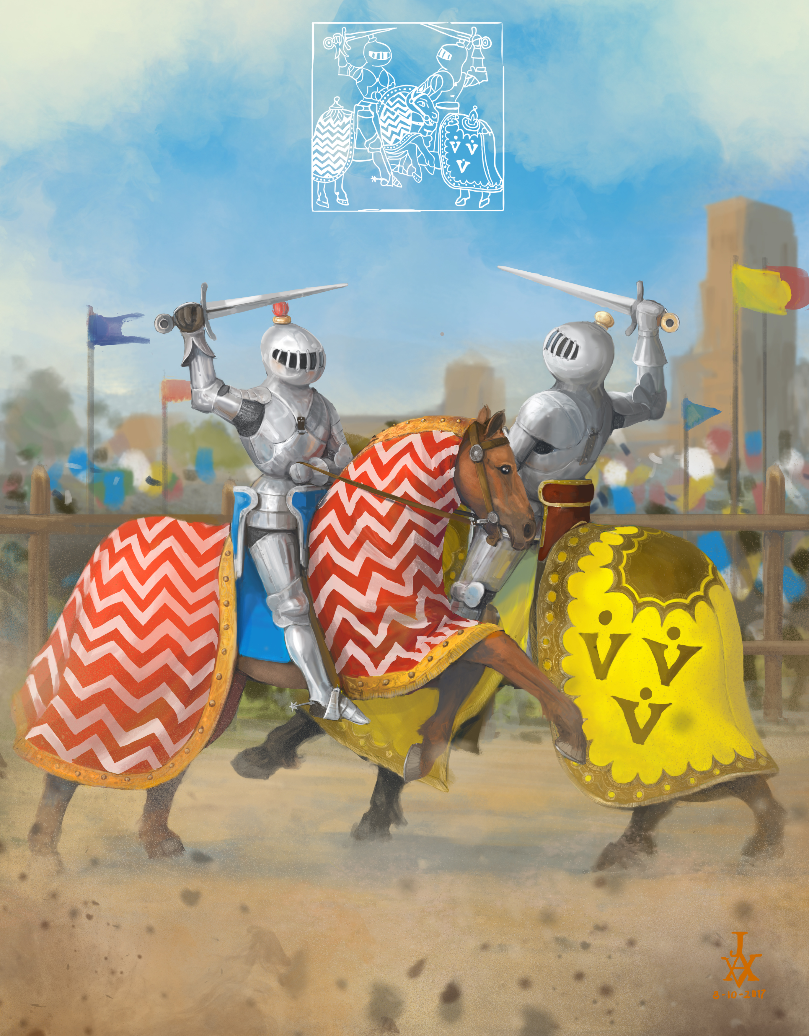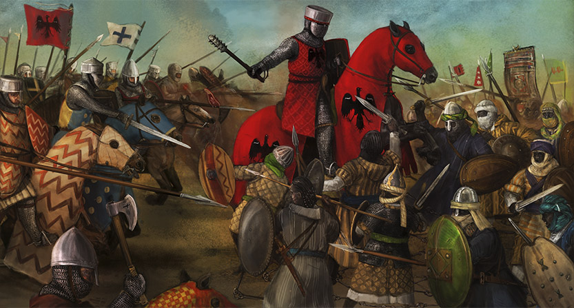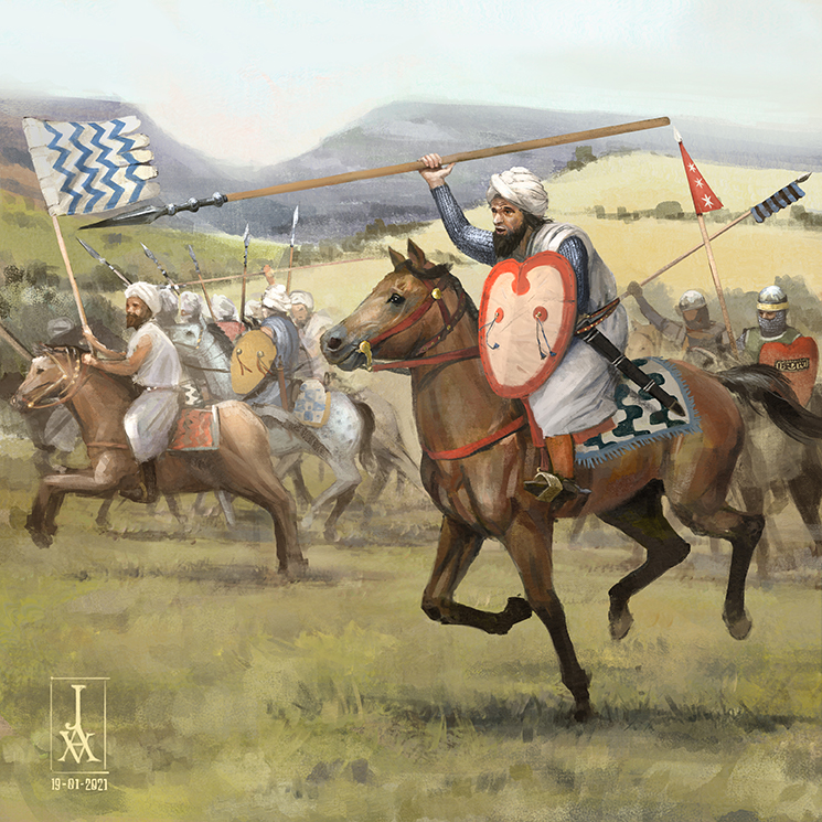 Combate entre jinete mongol de la Horda de Oro (derecha) y timúrida (derecho). Ambos imperios descienden de la división del Imperio Mongol de Gengis Khan en territorios menores.