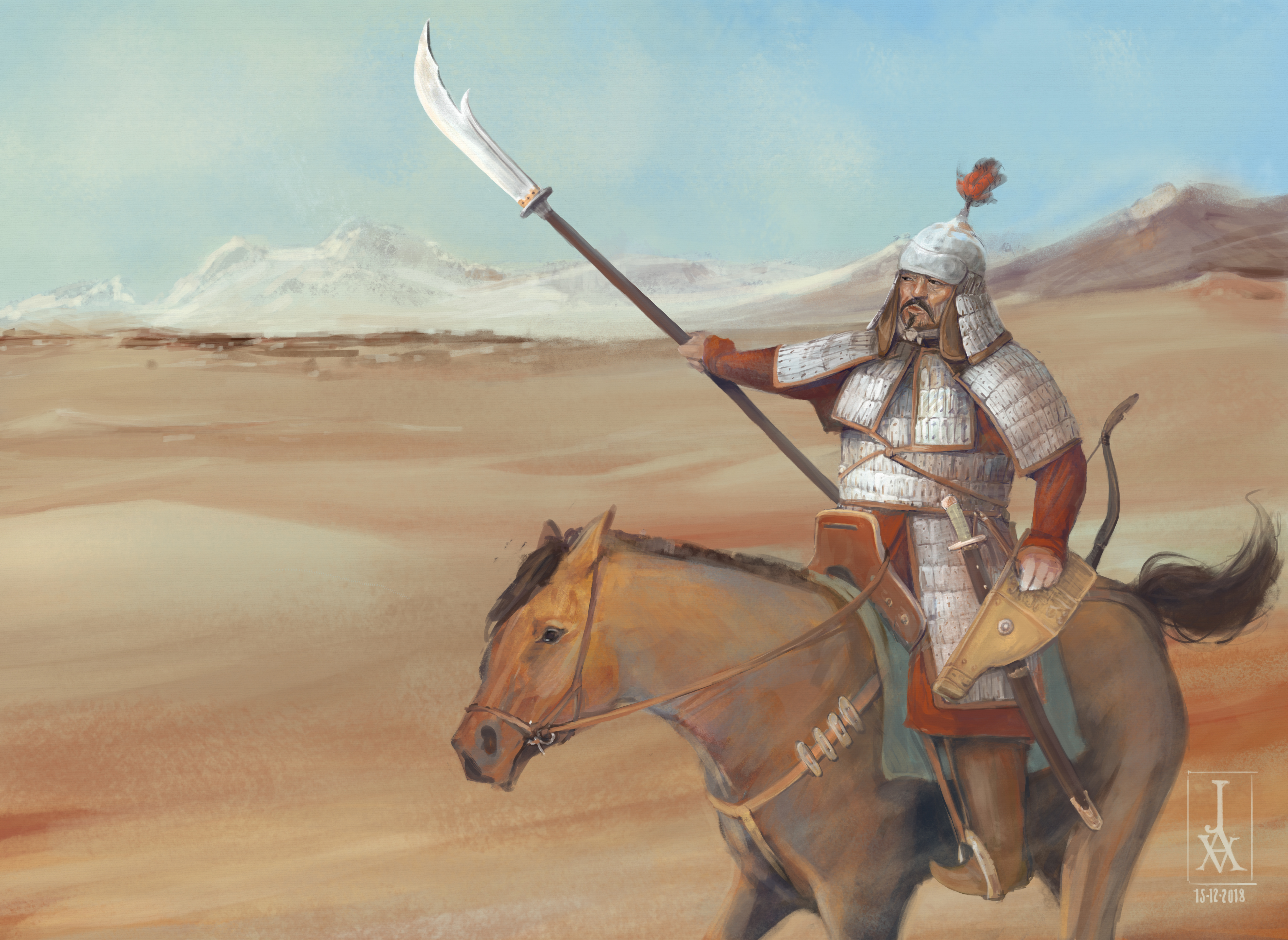 Jinete de caballería pesada mongola con equipación y armamento de influencia china durante la Dinastía Yuan.